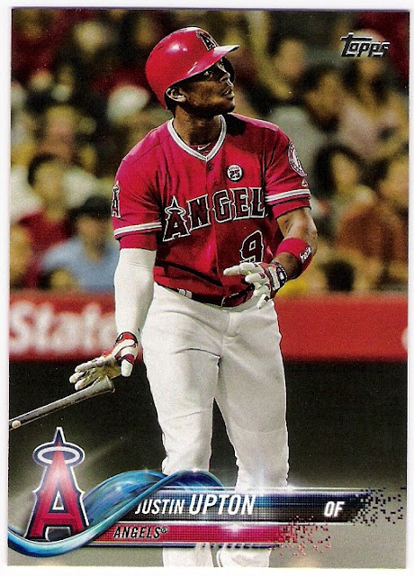 although it is partially obscured by the medallion pujols is wearing. here's a better look at pujols with the patch, courtesy of topps series 2:thanks to his being acquired by the angels at the end of august, justin upton's 2018 cards show the patch pretty well. here's his 2018 topps card